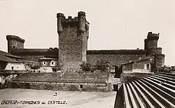 At the beginning of the 19th century the lineage of Álvarez de Toledo died out and the lordship passed to the citizens of Oropesa. Soon after, the Duques de Frías, who claimed descent from the Counts of Oropesa, succeeded in taking over the castle. The new nobles found the palace to be in a very dilapidated condition.[5] The last aristocratic owner of the complex was José Bernardino Fernández de Velasco, the fifteenth Duque de Frías. On the duke's death in 1888 the castle and palaces, still in poor condition, were sold to Enrique Gutiérrez de Salamanca and Ruffo de Gambert, who raised mortgages on the two palaces in order to buy them.[15]