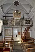 In other churches, this type of construction was also chosen for very shallow or very deep galleries. This placement always favours a good sound radiation of a small instrument into the church space.