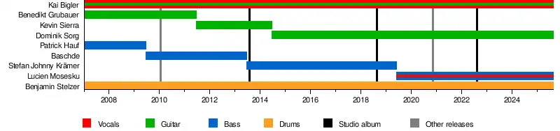 • Kai Bigler – lead vocals, guitar (2007–present)