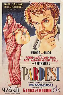 Pardesi (Hindi: Pardesi, lit. 'Foreigner'; Russian: Хождение за три моря, romanized: Khozhdenie za tri morya, lit. 'Journey Beyond the Three Seas') is a 1957 film jointly directed by Khwaja Ahmad Abbas and Vasili Pronin.[1][2][3]