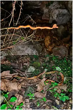 - ^ a b c d Liu, Shuo; Mo, Mingzhong; Li, Mei; Li, Biao; Luo, Xiong; Rao, Dingqi; Li, Song (2024-01-27). "Description of a New Species of the Pareas hamptoni Complex from Yunnan, China, with Confirmation of P. hamptoni Sensu Stricto in China (Squamata, Pareidae)". Animals. 14 (3): 421. doi:10.3390/ani14030421. ISSN 2076-2615. PMC 10854836. PMID 38338064.
