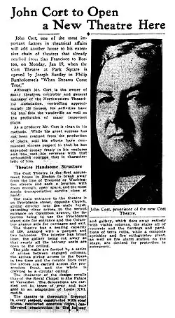 Feature story on the opening of the Cort Theatre in The Boston Sunday Post (January 11, 1914)