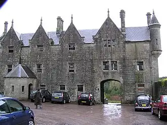 The present house is a two-storey building constructed in the 1840s from block rubble. It has a terraced front with octagonal pinnacles and gables at each projection of the façade, a big bay window and an upper oriel and incorporates an earlier two storey building as an east wing. At the rear is a coach house and free-standing office block.[1]