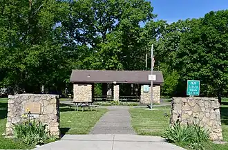 The NYA began by clearing brush and poison ivy from the park. They also built the rustic picnic shelter and entrance bollards, which were completed in 1941. At the same time, the NYA was also involved with projects in East Park. The Parker's Woods project provided employment for 40 young men.[2] Other improvements in the park such as playgrounds and athletic fields and courts were added by the city after World War II.
