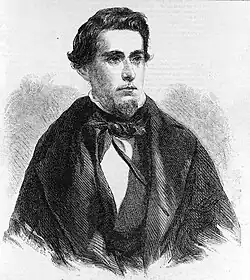 After some legal problems relating to recruiting volunteers for the Nicaraguan filibuster, he returned to Nicaragua in March 1856, only to be sent away by Walker. Things then started gradually to unravel for Parker French. He lectured on Walker, purporting to raise money for him. He was in Minnesota with his family for a few months in 1856, buying and then selling at least one newspaper and promoting a land development scheme.[52][53] Christopher Columbus Andrews discovered French in October 1856 living at a stagecoach inn at Watab, Minnesota: "Mr. French came to Watab a few week ago with a company of mechanics, and has been rushing the place ahead with great zeal. He appears to make a good impression on the people of the town."[54] A wealthy Bostonian reported that French cheated him in a deal involving the selling of two ships to the Navy. There was some unsavory business connected to ginseng.[49] He launched a "Black Republican" (anti-slavery) paper in San Francisco that died after three issues in 1857.[55] He got into trouble in New Orleans over a fake opium shipment.[56] He was arrested by federal authorities in Connecticut and imprisoned in Fort Warren in Boston on charges of spying for the Confederacy.[57] After an extensive investigation with considerable circumstantial evidence implicating French as a Knight of the Golden Circle and a Confederate agent the investigating officer recommended that French should be released; no definitive case of spying or treason could be mounted.[6][58]