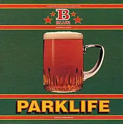 "Parklife" is a song by the English rock band Blur, released in August 1994 by Food and Parlophone as the third single from the band's third studio album, Parklife (1994). The song is written by the band and produced by them with Stephen Street and John Smith. It contains spoken-word verses by English actor and singer Phil Daniels, who also appears in the accompanying music video, which was directed by Pedro Romhanyi. "Parklife" reached No. 10 on the UK Singles Chart and No. 30 in Ireland. It won British Single of the Year and British Video of the Year at the 1995 Brit Awards, and was also performed at the 2012 Brit Awards.[3] The Massed Bands of the Household Division performed "Parklife" at the London 2012 Olympics closing ceremony.[4] The song is considered one of the defining tracks of Britpop, and it features on the 2003 compilation album Live Forever: The Rise and Fall of Brit Pop.