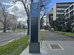 New Grattan street western station entrance, looking east towards Royal Parade, January 2024 -
