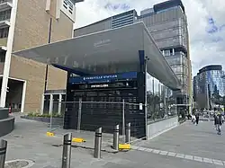 The station was designed by RSHP, Hassell and Weston Williamson,[6] and construction materials feature sandstone, steel, glass and bluestone.[7]