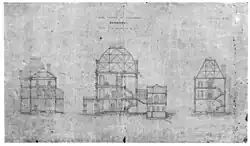 The Parliament of Queensland first met on 22 May 1860 in the former convict barracks on Queen Street.[2] The building was not considered a suitable meeting place for Parliament in the long-term, but the government was preoccupied with the construction of Government House, and plans for a new legislative facility were not made until after its completion.[3] In November 1863 a commission chose the site for the new parliamentary building on the corner of Alice and George Street.[3] The commission soon opened an Australia-wide competition for the new building's design, and offered a 200 guinea prize for the winning submission.[3] In April 1864, a design by Benjamin Backhouse was selected, but was later rejected after it was estimated that it would require £38,000 to construct, exceeding the maximum cost of £20,000 specified in the competition.[3][4] In October 1864, a design by William Henry Ellerker was recommended by the Parliamentary Commissioners.[5] However in November 1865, the commissioners withdrew their recommendation and resigned, following criticism by James Cowlishaw who claimed none of the submissions was satisfactory.[6][7] In December 1864, Ellerker wrote a public complaint about the process,[8] but ultimately plans by Charles Tiffin, the Queensland Colonial Architect, were selected. Amid controversy and allegations of undue influence on the outcome of the competition, Tiffin donated his prize money for the design to the Ipswich Grammar School.