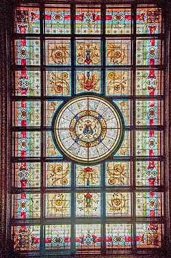 The main entrances are contained in a two-storey building with a colonnaded front verandah. On the ground floor, there are two entrance halls. Between these halls is the Parkes Room, which is used for small committee meetings and events. The upstairs rooms are used by Hansard.[2] To the north of this building is the chamber of the Legislative Assembly, the lower house. The colour scheme of the chamber is green, following the colours in the House of Commons of the United Kingdom. At one end of the room is the speaker's chair, and in front of this is a table holding the mace. Government members sit in the two rows of seating to the speaker's right, and opposition members to the left. There are galleries for the press behind the speaker, Hansard to the speaker's left, guests of the speaker opposite the speaker and the public above the speaker's gallery and to the speaker's right.[3]