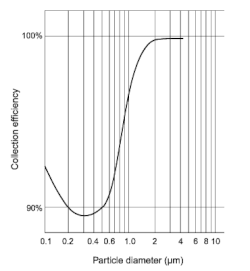 In the particle size range of approximately 0.1 to 1.0 μm, neither of these two collection mechanisms (impaction or diffusion) dominates. This relationship is illustrated in Figure 3.