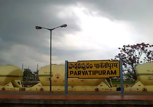 Parvatipuram railway station (station code:PVP), located in the Indian state of Andhra Pradesh, serves Parvathipuram in Parvathipuram district. It is one of the two railway stations in Parvathipuram.