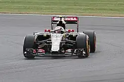 At the Spanish Grand Prix, Maldonado was again involved in an incident – he was hit by team mate Romain Grosjean, who had just returned to the track after missing a braking point, causing rear wing damage to Maldonado's car.[75] Despite the damage, Maldonado did not lose pace and was initially able to continue in seventh place; however, during his pitstop the team deemed the damage to be substantial enough to retire the car. At the Monaco Grand Prix, Maldonado was not able to profit from a season-best qualifying result of 8th due to a brake issue from the start of the race; Maldonado and Verstappen collided on the sixth lap, with Maldonado subsequently forced to retire from the race.[76] After two 7th-place finishes in Canada and Austria, Romain Grosjean lost control of his car causing him to crash into his team mate Maldonado on the first lap at Silverstone, causing both Lotus cars to retire.[77] At the Hungarian Grand Prix, Sérgio Pérez tried to overtake Maldonado at the outside of the corner, Maldonado failed to leave enough room so the two collided, causing Pérez to spin. Maldonado was later penalised for his role in the incident.[78] Maldonado was among numerous others that were penalised for speeding in the pit lane,[78] and overtaking a Manor car under neutralised safety car conditions. Although the Manor (being lapped) let Maldonado deliberately pass him by the penalty was not withdrawn.[78] At the midpoint of the season, the BBC journalist Andrew Benson rated Maldonado as the worst driver to that point, and stated that he "seems to be trying his utmost to find new ways to infuriate his employers and collect as many penalty points from the stewards as possible."[79]