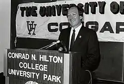 Pat Foster (born June 22, 1939)[1] is an American former college basketball coach. He served as the head men's basketball coach at Lamar University (1980–1986), University of Houston (1986–1993), and the University of Nevada, Reno (1993–1999), compiling a career record of 366–203.[2] Foster also served as athletic director at Lamar from 1983 to 1985.[3] At Houston, he succeeded Guy Lewis. He then left Houston to coach Nevada before retiring.[4]