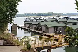 The lake was created by damming the Patoka River about 118.3 miles (190.4 km) above its mouth with the Patoka Lake Dam, a 145 feet (44 m) high rockfill earthen dam that was completed in 1978.[3] The lake is fed by several smaller tributaries including Allen Creek, Painter Creek, and Ritter Creek. After the lake was created several parks and nature preserves were established around it totaling 16,920 acres (68.5 km2). The lake and dam is still managed by a cooperative management team of the Army Corps of Engineers and the Indiana Department of Natural Resources.[4]