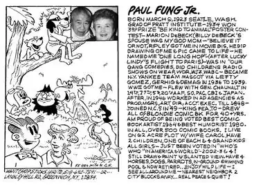He was the son of Paul Fung, a cartoonist who drew the comic strip Dumb Dora for several years and had worked with Cliff Sterrett and Billy DeBeck. The elder Fung took over Dumb Dora when Chic Young left that strip.[2]