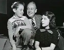 ![]() McGrath (center) as Dr. Martin Allison in the radio comedy My Son Jeep. Also pictured are Bobby Alford (son "Jeep") and Joan Lazer (daughter Peggy). | |