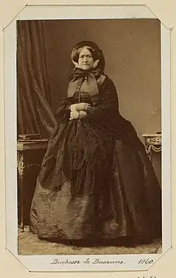 She had an apartment in the Tuileries, and hosted private functions attended by the Parisian elite, which the empress sometimes attended, and which played a valuable role in recruiting connections and supporters of value for the Second Empire regime.[3] She served until her death in 1867, and was replaced by Marie-Anne Walewska.