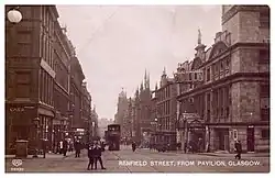 Pavilion Theatre shown in a postcard of around 1912 of Renfield Street, Glasgow, at the corner of Renfrew Street