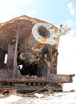 The bridge between Peale and Wake burned down in the early 2000s.[36] In the 21st century, Peale has mostly been left to nature and is filled with the ruins of the destroyed Pan-American hotel, pier, seaplane ramp, and fortifications from WW2.[37] Peale avenue and Pan-Am road, various old facilities such as the Loran buildings, Navy Barracks, and other remains, are slowly being overgrown with vegetation. Typhoon Ioke stripped much of the vegetation from Toki point when it struck in 2006.[36] The island is periodically visited by small boats or kayaks, that can cross the small channel.[37]