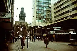 Peatonal Sarandí is an 0.5 miles (850 m) pedestrian street in Ciudad Vieja, Montevideo, Uruguay. It is the main lane of the historic center, and one of the most touristic sites in the city, due to the fact that it is flanked by different architecturally notable buildings.[1] The pedestrian street starts at the Gateway of the Citadel and ends at its intersection with Peatonal Pérez Castellano, while the remaining four blocks, up to the Rambla, are allowed for vehicles.[2] As an extension of this street is the long southern breakwater of the Port of Montevideo, which has taken on the name "Escollera Sarandí".[3]