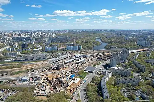 Pechatniki (Russian: Печатники) is a station on the Bolshaya Koltsevaya line of the Moscow Metro, in the Pechatniki District, between the planned stations Tekstilshchiki and Nagatinsky Zaton.[1] There is a transfer to the Lyublinsko–Dmitrovskaya line, via its Pechatniki station.[1] The nearby Pechatniki railway station opened in 2022 to allow for transfers to Line D2 of the Moscow Central Diameters, as part of a new transport interchange hub estimated to serve around 70,000 people daily.[2][3]