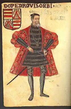 ![]() Portrait of Pedro Mascarenhas in Livro de Lisuarte de Abreu, c. 1560. | |