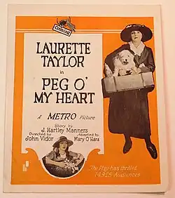 Peg o' My Heart is a 1922 American silent drama film directed by King Vidor and starring Laurette Taylor. It is based on the 1912 play written by Taylor's husband J. Hartley Manners. The play starred Laurette Taylor and famously ran a record number of performances on Broadway.[1] Six reels of the original eight reels survive at the Library of Congress.[2]