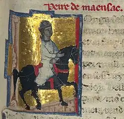 Peire de Maensac was an Auvergnat knight and troubadour. He was from Maensac (either Mauzat, Manzat or Mainsat) in the lands of Dalfi d'Alvernha. He came from the petty nobility. His brother Austor or Austors was also a troubadour, but none of his works survives.[1] According to Peire's vida the brothers agreed that one of them would "have the castle" (i.e. inherit) and the other would be the "inventor" (i.e. troubadour). Peire became the troubadour.