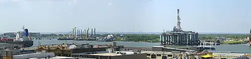 The south side of the island is home to multiple facilities, such as dry docks, and tugboat operators, that support the maritime industry in Galveston, and the Galveston Texas City Pilots who navigate ships through Galveston Bay.[1]