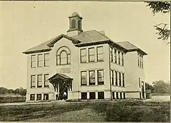 A new union school building was constructed in 1907 at 2070 Five Mile Line Road, just a little north of the Four Corners.[5][13] A high school alumni group was organized as early as 1912.[14] In the fall of 1913, the high school opened for the year with a faculty of six: principal George Cooper; preceptress Mable Thomas; teachers Edna Payne (sixth and seventh grades); Cora Drummon (fourth and fifth grades); Helen Thomas (second and third grades)and Julia McNab (primary).[15] The class of 1919 consisted of only one graduate, Luella Engelhart.[16]
