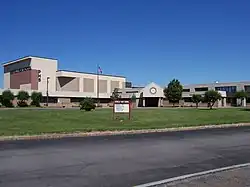 The new high school building opened in 1958.[69] The old high school building on Five Mile Line Drive was converted into a Junior High School, housing grades 6 through 8.[70] School officials wished to move the sixth grade out of the junior high, but the three elementary schools (Indian Landing, Atlantic Avenue and Baird Road) were already at full capacity.[71] The district proposed building a fourth elementary school on the Panorama Plaza area, on the west side of Panorama Trail Road about five hundred feet from Penfield Road, at a cost of $1,450,000 (USD).[72] The proposed school would be built on a 26-acre parcel and would have had capacity for 800 students.[73] The anticipated cost was reduced to $1290,000 before a vote on the bond issue,[74] but voters rejected the proposal by a vote of 726 against, 500 in favor.[75] Officials concluded that the proposed location, near an active commercial area, caused the defeat, so the school district revised the plan, proposing the school be located on Gebhardt Road, just south of the Five Mile Line entrance to the high school, to be built for $1,235,000, and to be opened by the 1961-62 school year.[76] This proposal passed, by a vote of 1014 to 788.[77] The school, known as Cobbles Elementary School, is located at 140 Gebhardt Road, Penfield, and currently has an enrollment of 500 students, from kindergarten to fifth grade.[78]