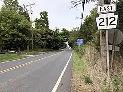 The portion of PA 212 between Quakertown and Richlandtown dates back to 1854, when the Richland Turnpike or Plank Road Company was created to build a turnpike linking the Doylestown Road (present-day PA 313) to the Hellertown Road (present-day PA 412). This road existed as an unimproved road into the 20th century.[4] The present-day alignment of PA 212 was not legislated as a state highway in 1911.[5] PA 212 was designated by 1927 to run from US 309 (now PA 309) and PA 312 (now PA 663) in Quakertown northeast to US 611 (now PA 611) in Riegelsville, heading east through Quakertown on Broad Street before following its current alignment. At this time, the route was paved from Quakertown to a short distance north of Richlandtown.[6] By 1930, the route was paved from north of Richlandtown to past the east end of the PA 412 concurrency. The easternmost portion of the route leading to US 611 south of Riegelsville was under construction at this time.[7] The portion of PA 212 under construction was completed by 1940.[8] By 1971, PA 313 was extended west to run concurrent with PA 212 on Broad Street in Quakertown.[9] The western terminus of PA 212 was cut back to its current location at PA 313 by 1991, removing the concurrency with PA 313.[10]