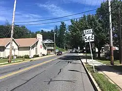 Pennsylvania Route 562 (PA 562) is a state highway in Berks County, Pennsylvania. The route runs 13.92 mi (22.40 km) from U.S. Route 422 Business (US 422 Bus.) in St. Lawrence east to PA 73 in Boyertown. PA 562 is a two-lane undivided road its entire length, passing through rural areas of eastern Berks County as it connects Boyertown to the Reading area. Along the way, PA 562 intersects PA 662 in the community of Yellow House. PA 562 was first designated by 1930 between Stonersville and PA 62 (later PA 100) southwest of Boyertown, running via Amityville and Yellow House. In the 1930s, the route was extended west to US 422 (now US 422 Bus.) in St. Lawrence and was realigned to its current alignment. PA 562 was extended east to PA 73 in 1964 after PA 100 was shifted to a new alignment to the east of Boyertown.
