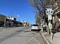 When Pennsylvania legislated routes in 1911, the road between Frackville and Shenandoah was designated as part of Legislative Route 183.[5] PA 924 was designated in 1928 to run from a point between Brandonville and Sheppton northeast to PA 93 in West Hazleton; at this time the entire route was unpaved except for the portion near West Hazleton. The section of the present route between US 120 (now PA 61) in Frackville and Ringtown Boulevard north of Shenandoah was designated as part of PA 142 in 1928; PA 142 continued north from Shenandoah to Ringtown. At this time, the section of PA 142 between Frackville and Sheandoah was paved.[6] By 1930, PA 924 was paved between southwest of Sheppton and the border of Schuylkill and Luzerne counties while the remainder of the route was under construction. At this time, the road between north of Shenandoah and between Brandonville and Sheppton was an unnumbered, unpaved road.[7] In the 1930s, PA 924 was extended southwest to PA 142 (Ringtown Boulevard) north of Shenandoah; at this time the entire route was paved. PA 142 was also widened to a multilane road between Frackville and Gilberton.[8]