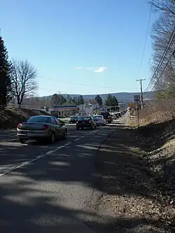 PA 93 enters Hazle Township in Luzerne County and continues past homes along Main Street. The road widens to a divided highway and comes to an intersection with the eastern terminus of PA 424, which serves as a southern bypass of the city of Hazleton. Past this intersection, the route enters the city of Hazleton and becomes East Broad Street, a three-lane road with a center left-turn lane. PA 93 heads northwest through residential areas before it passes to the northeast of Lehigh Valley Hospital–Hazleton. The road runs past homes and businesses, heading west-northwest and crossing Norfolk Southern's Hazleton Running Track. The route enters the commercial downtown of Hazleton and becomes a four-lane undivided road, with the name changing to West Broad Street at the Wyoming Street intersection. PA 93 comes to an intersection with PA 309 and leaves the downtown area, continuing past homes and businesses. The road passes to the north of a shopping center before it comes to a junction with PA 924. Here, PA 924 turns northwest to form a concurrency with PA 93 and the road enters the borough of West Hazleton as Broad Street, passing homes. The road turns to the north before PA 924 splits from PA 93 by heading east on two-lane Washington Avenue. PA 93 curves northwest and splits from Broad Street to become Susquehanna Boulevard, a five-lane road with a center left-turn lane. The road passes between shopping centers to the southwest and residential neighborhoods to the northeast before it becomes a four-lane divided highway and curves north into a wooded areas, becoming the border between West Hazleton to the west and Hazle Township to the east. The route fully enters Hazle Township and turns northwest, passing businesses and heading to the south of the Laurel Mall. PA 93 heads west and crosses into Sugarloaf Township, running past homes and businesses north of the Valmont Industrial Park. The road passes to the south of the Penn State Hazleton university campus before it comes to an interchange with I-81.[2][4]