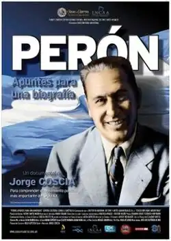 Perón: apuntes para una biografía (Spanish: Perón: Notes for a biography) is a 2010 Argentine documentary film about Juan Domingo Perón. It features a number of Argentine historians like Norberto Galasso, and it is focused mainly in Perón early life and his intervention in the Revolution of '43. His government is described in a brief summary at the end, and it doesn't reference his life after the Revolución Libertadora military coup that ousted him from power. It is written and directed by the Argentine secretary of culture, Jorge Coscia.[1] It is the eight biography film produced by Caras y Caretas.[2]