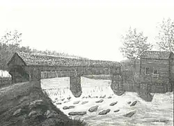 Near the south end of the property runs Hunting Creek. A modern bridge on SR 1832 now crosses the creek, but in earlier years a covered bridge had been at the site. Just east of the bridge was the Perciphull Campbell grist mill, which is no longer standing.[2]