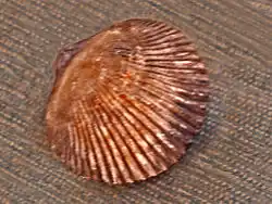 Peregrinella is an extinct Early Cretaceous rhynchonellid genus with scattered, global representation from North America to Europe and Tibet. These brachiopods are stationary epifaunal suspension feeders, its most distinguishing feature is the size, considered to be the largest of all Mesozoic rhynchonellids, which has long puzzled paleontologists because of its unusual morphology, stratigraphic occurrence, and distribution patterns.[1]