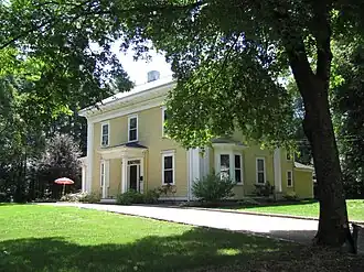 The Perez Smith House was a historic house at 46 Lincoln Street in Waltham, Massachusetts. The 2½ story wood-frame house was built in 1851 and was one of the city's finest transitional Greek Revival/Italianate houses. It had a typical Italianate three-bay facade, deep cornice with decorative brackets, and round-arch windows in the gable. It also had Greek Revival pilastered cornerboards, and its center entry was flanked by sidelight windows and topped by a transom window and paneled sunburst. Its windows were topped by heavy corniced lintels.[2]