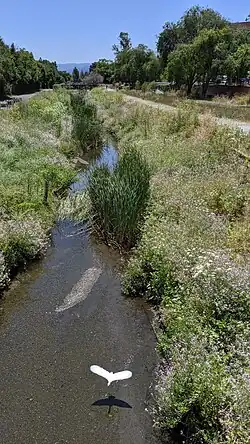 Permanente Creek is a 13.3-mile-long (21.4 km)[3] stream originating on Black Mountain in Santa Clara County, California, United States. Named by early Spanish explorers as Arroyo Permanente or Río Permanente because of its perennial flow,[1] the creek descends the east flank of Black Mountain then courses north through Los Altos and Mountain View, discharging into southwest San Francisco Bay historically at the Mountain View Slough but now virtually entirely diverted via the Permanente Creek Diversion Channel to Stevens Creek and Whisman Slough in San Francisco Bay.[4]