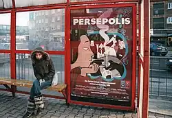 A poster for Persepolis at a tram stop in Warsaw, Poland. Photograph by Ivonna Nowicka