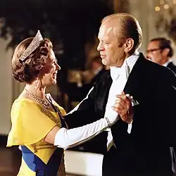 In matters of diplomacy, Elizabeth was known to be quite formal, and royal protocol is generally very strict. Though some of the traditional rules for dealing with the monarch were relaxed during her reign (bowing was no longer required, for example, although it is still frequently performed), other forms of close personal interaction, such as touching, are discouraged by officials. At least six people are known to have broken this rule, the first being a woman named Alice Frazier, who hugged the Queen in 1991 when Elizabeth visited her residence in a government housing project in Washington, D.C. (accompanied by First Lady Barbara Bush and Secretary of Housing and Urban Development Jack Kemp).[52][53] The second was Paul Keating, Prime Minister of Australia, when he was photographed with his arm around Elizabeth in 1992. The third was Canadian cyclist Louis Garneau, who did the same thing ten years later when posing for a photograph with Elizabeth at Rideau Hall (her official residence in Canada).[54] In 2009, Elizabeth initiated an affectionate gesture with First Lady Michelle Obama at a palace reception she attended with President Obama. The Queen rested her hand briefly at the small of the First Lady's back, a gesture that Mrs Obama returned. It was remarked at the time as unprecedented and described afterwards by a palace spokeswoman as "a mutual and spontaneous display of affection and appreciation between The Queen and Michelle Obama."[55]