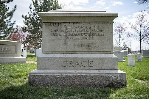 Peter Grace (March 18, 1845 – March 27, 1914) was an American soldier who fought in the American Civil War. Grace received his country's highest award for bravery during combat, the Medal of Honor.[1] Grace's medal was won for his heroism during the Battle of the Wilderness in Virginia on May 5, 1864.[1] He was honored with the award on December 27, 1894.[2]