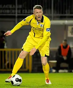 ![]() Peter Hynes in action for Longford Town in a 0-1 win against Galway F.C. in the League of Ireland First Division in March 2014 | |||