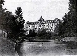 Kürten claimed to have committed his first murder in adulthood in November 1899.[24] In his 1930 confessions to investigators, he claimed to have "picked up an 18-year-old girl at the Alleestraße" and persuaded her to accompany him to the Hofgarten. There, he claimed to have engaged in sex with the girl before strangling her into unconsciousness with his bare hands before leaving the scene, believing her to be dead.[25] No contemporaneous records exist to corroborate Kürten's claims. If this attack did take place, the victim likely survived this assault.[25] Nonetheless, Kürten later stated that, via committing this act, he had proven to himself that the greatest heights of sexual ecstasy could only be achieved in this manner.[26]