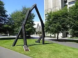 In 1978 Nicholls represented New Zealand at a Sculpture Symposium held in tandem with the Edmonton 1978 Commonwealth Games.[7] While there, Nicholls created the thirteenth work in the New Land series, which would serve as the maquette for a major kinetic sculpture, Counterpoise (1978), commissioned for the Muttart Conservatory in Edmonton.[5] His time at the University of Wisconsin-Superior resulted in the Wisconsin series: Wisconsin 7, renamed Measure (1981), today stands in the courtyard of the University of Auckland School of Architecture and Planning.[8]