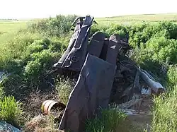 Petrel was established as a townsite along the Chicago, Milwaukee, St. Paul and Pacific Railroad in Gilstrap Township. A post office was established in the town on October 29, 1908 when the post office for the neighboring area of Thebes was moved to the new townsite and assumed the new name. The Petrel post office closed September 30, 1939, and mail service was transferred to Lemmon, South Dakota.[2] As a result the town and the surrounding area share the Lemmon ZIP Code of 57638, even though they are in North Dakota. Little remains of the physical town today, other than a few deteriorating building foundations and other equipment.[3]