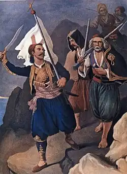 Petros Mavromichalis (Greek: Πέτρος Μαυρομιχάλης; 1765–1848), also known as Petrobey (Greek: Πετρόμπεης [peˈtrobe.is]), was a Greek general and politician who played a major role in the lead-up and during the Greek War of Independence. Before the war, he served as the Bey of Mani. His family had a long history of revolts against the Ottoman Empire, which ruled most of what is now Greece. His grandfather Georgios and his father Pierros were among the leaders of the Orlov Revolt.