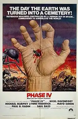 Phase IV is a 1974 science-fiction horror film directed by graphic designer and film-maker Saul Bass, and written by Mayo Simon, inspired by H. G. Wells's 1905 short story "Empire of the Ants". The film stars Michael Murphy, Nigel Davenport and Lynne Frederick.[2]